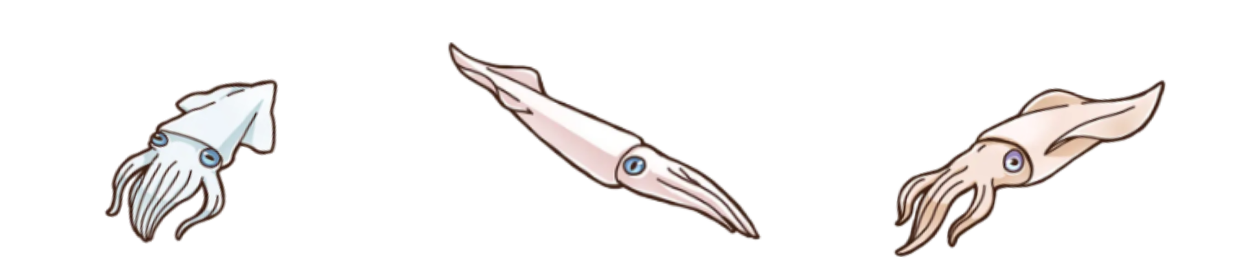 時期によりイカの種類が変わります(シロイカ、アオリイカ、ヤリイカ)